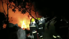 經(jīng)過消防隊(duì)員兩個小時的撲救,終于將火勢控制住,避免引發(fā)山火。