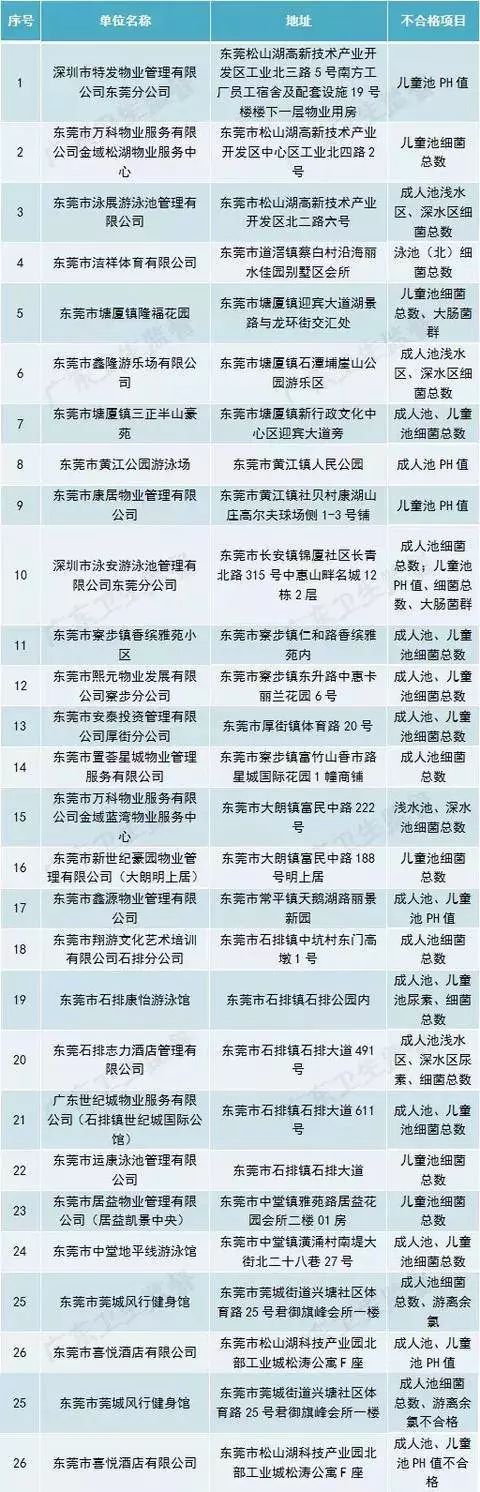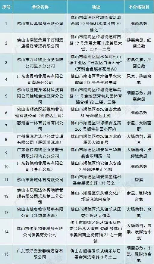廣東省部分城市游泳場(chǎng)所水質(zhì)抽檢不合格場(chǎng)所名單(第一批)