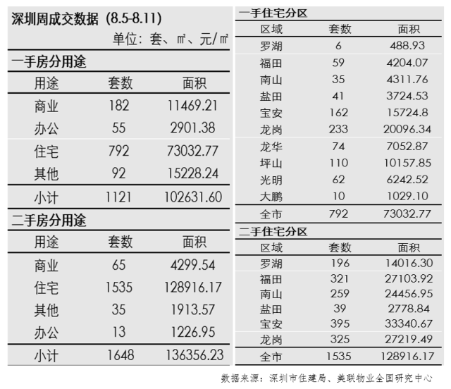 表1:深圳周成交數(shù)據(jù)分類統(tǒng)計(jì)表(8.5-8.11)