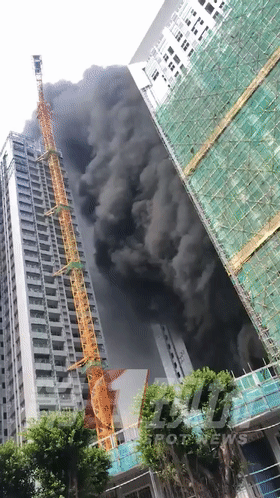 目擊市民表示,在布吉德興花園西側(cè)的一個(gè)在建樓盤工地里,疑似發(fā)生火情?,F(xiàn)場冒出大量黑煙,升起的高度超過了一旁三十多層高的樓盤。