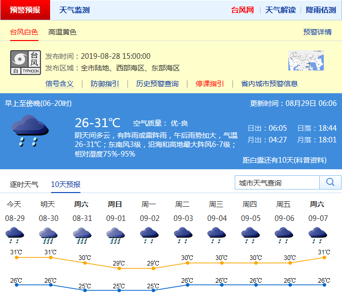 見圳客戶端·深圳新聞網(wǎng)2019年8月29日訊 記者從深圳市氣象臺獲悉,第12號臺風“楊柳”(熱帶風暴級)預計將向偏西方向移動,趨向海南南部沿海,29日距離我市最近,約500-600公里。市氣象臺已于28日15時發(fā)布臺風白色預警信號。受“楊柳”外圍環(huán)流影響,預計29-30日有間歇性降雨,雨量達大雨,局部暴雨;本周末至下周中期,天氣不穩(wěn)定,降雨持續(xù)。