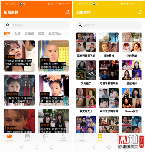 ZAO提供的視頻素材和表情素材頁(yè)面截圖。