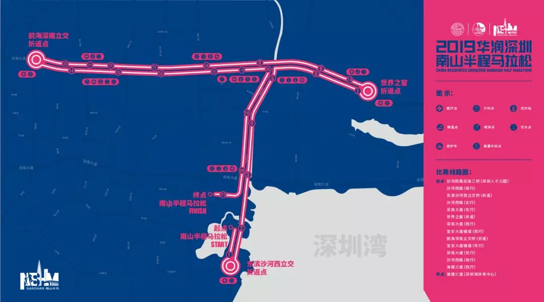 值得一提的是,今年南馬的路線較去年略有調(diào)整,賽事線路整體呈T字形,賽道起點在沙河西路后海二橋(深圳人才公園東門),賽道終點在海德三道(深圳灣體育中心),賽道主體由沙河西路和深南大道組成一縱一橫,途徑深圳灣總部經(jīng)濟片區(qū)、高新技術(shù)園、大沙河生態(tài)長廊、世界之窗、南頭古城等多個地標性建筑,不僅彌補了往年沒有經(jīng)過深圳灣海域的遺憾,讓選手在賽跑之余一覽灣區(qū)海景,更向選手與觀眾充分展示南山自然人文科技之美。