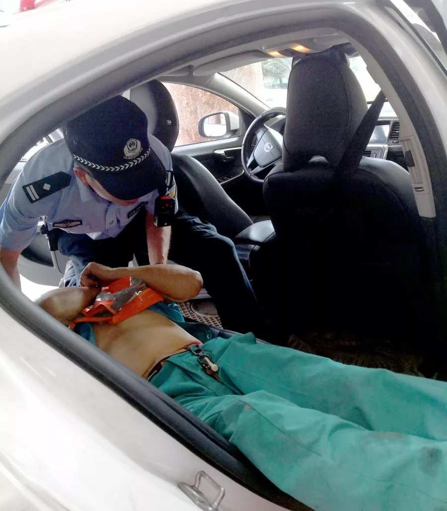 羅明星和交警隊(duì)員還有一名熱心群眾一起把這名環(huán)衛(wèi)工人抬上了警車。憑借著對(duì)轄區(qū)的了解,羅明星很快將他送到了最近的仁愛(ài)醫(yī)院。