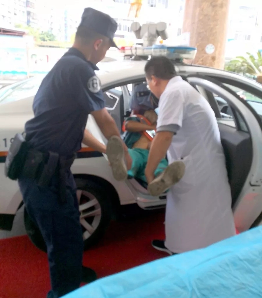 羅明星和交警隊員還有一名熱心群眾一起把這名環(huán)衛(wèi)工人抬上了警車。憑借著對轄區(qū)的了解,羅明星很快將他送到了最近的仁愛醫(yī)院。