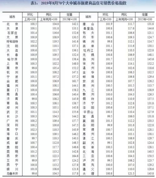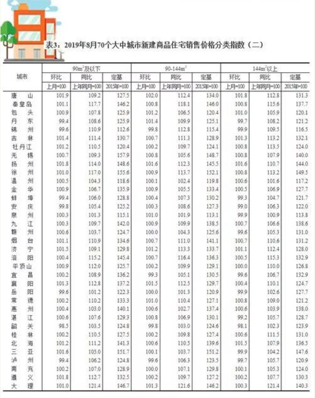 央視財(cái)經(jīng)2019年9月18日訊 近日,國(guó)家統(tǒng)計(jì)局發(fā)布了8月份70個(gè)大中城市商品住宅銷售價(jià)格變動(dòng)情況:一二線城市新建商品住宅和二手住宅銷售價(jià)格環(huán)比、同比漲幅均與上月相同或回落;三線城市新建商品住宅銷售價(jià)格環(huán)比漲幅與上月相同,二手住宅漲幅微升。