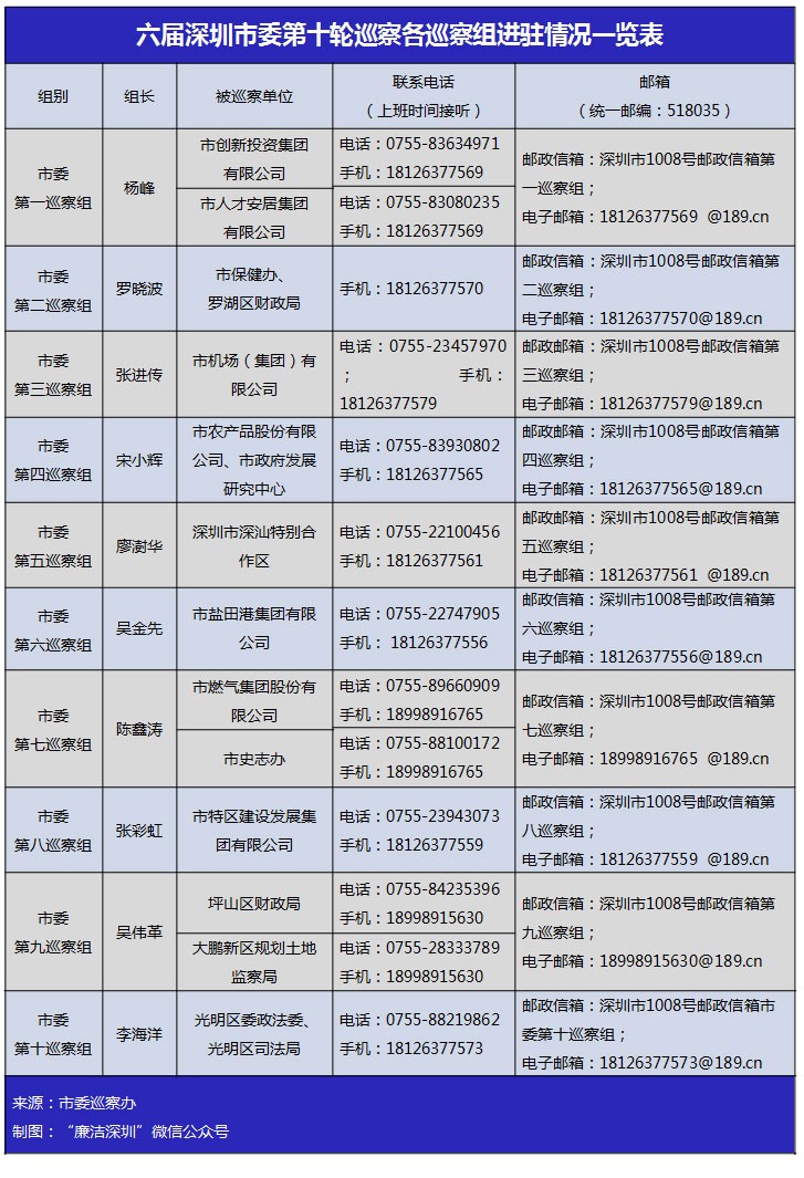 近日,根據(jù)深圳市委巡察工作部署,六屆市委第十輪巡察進(jìn)駐已全部完成,10個巡察組分別對市保健辦、市機場(集團(tuán))有限公司、市鹽田港集團(tuán)有限公司、市燃?xì)饧瘓F(tuán)股份有限公司、市農(nóng)產(chǎn)品股份有限公司、市特區(qū)建設(shè)發(fā)展集團(tuán)有限公司、市創(chuàng)新投資集團(tuán)有限公司、市人才安居集團(tuán)有限公司等8個單位黨組織開展常規(guī)巡察,對深圳市深汕特別合作區(qū)和市史志辦開展機動式巡察,對市政府發(fā)展研究中心黨組開展巡察“回頭看”;提級對光明區(qū)委政法委開展掃黑除惡專項斗爭進(jìn)行專項巡察,對羅湖區(qū)財政局、坪山區(qū)財政局黨組開展巡察“回頭看”,對光明區(qū)司法局、大鵬新區(qū)規(guī)劃土地監(jiān)察局黨組開展機動式巡察。