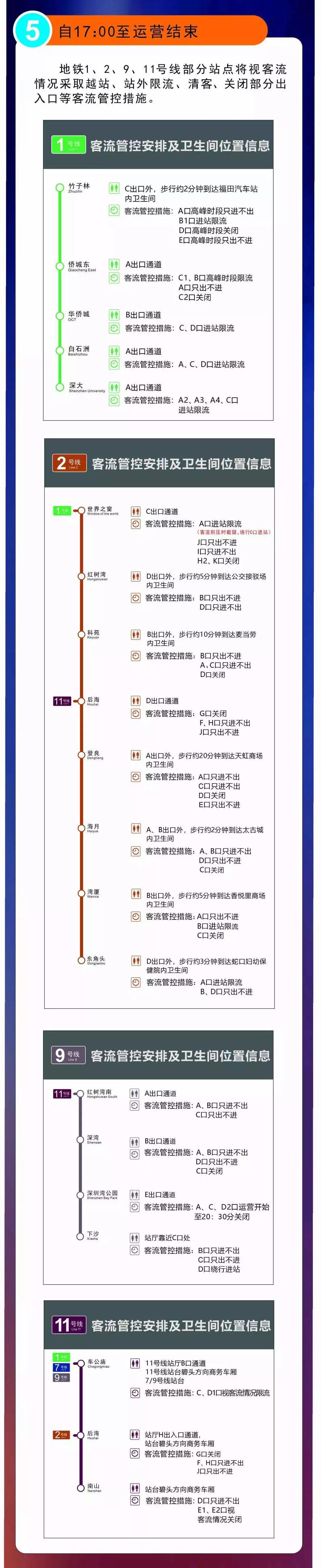 2號(hào)線世界之窗、科苑、灣廈站,11號(hào)線南山站、車(chē)公廟站將視客流情況采取列車(chē)清客。
