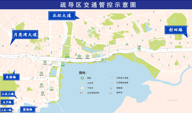 以深圳灣人才公園為中心,濱海大道(南海立交至竹子林立交段雙方向)、沙河西路(濱海大道至東濱立交雙方向)、望海路(東濱立交至中心段雙方向)、中心路(科苑南路至望海路雙方向)、科苑南路(東濱路至中心路段東側(cè))、東濱路(后海濱路至科苑南路段,不含)、后海濱路(濱海大道至東濱路,不含)的合圍區(qū)域?qū)嵤┙煌ü苤疲灰约盀I海大道東往西方向(竹子林立交至南海立交),西往東方向(南海立交至竹子林立交)實(shí)施交通管制。