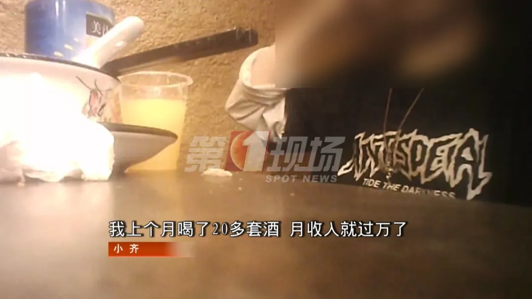 接單后,可以叫其他女孩過(guò)來(lái)陪酒,業(yè)內(nèi)俗稱(chēng)“女站”,“女站”喝一套酒,可以賺38塊8,小齊就是其中一位,這樣她可以做到月入上萬(wàn)。
