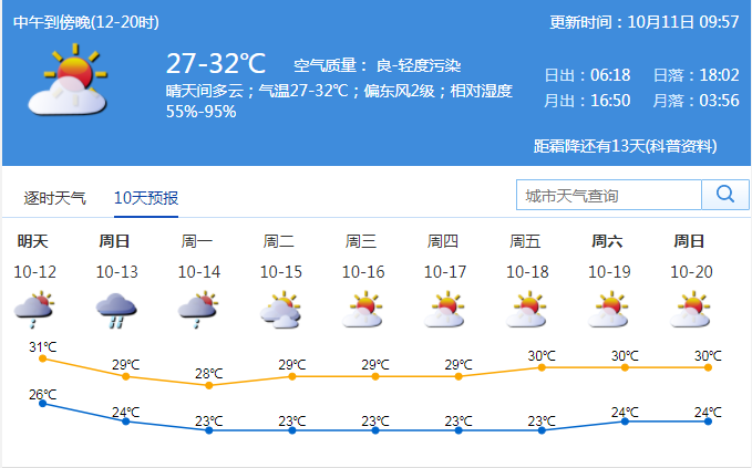 見圳客戶端·深圳新聞網(wǎng)2019年10月11日訊 據(jù)深圳市氣象局消息,今日深圳晴天間多云;氣溫27-32℃;偏東風2級;相對濕度55%-95%