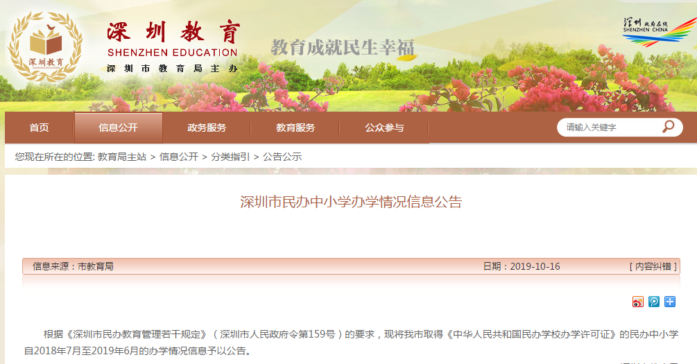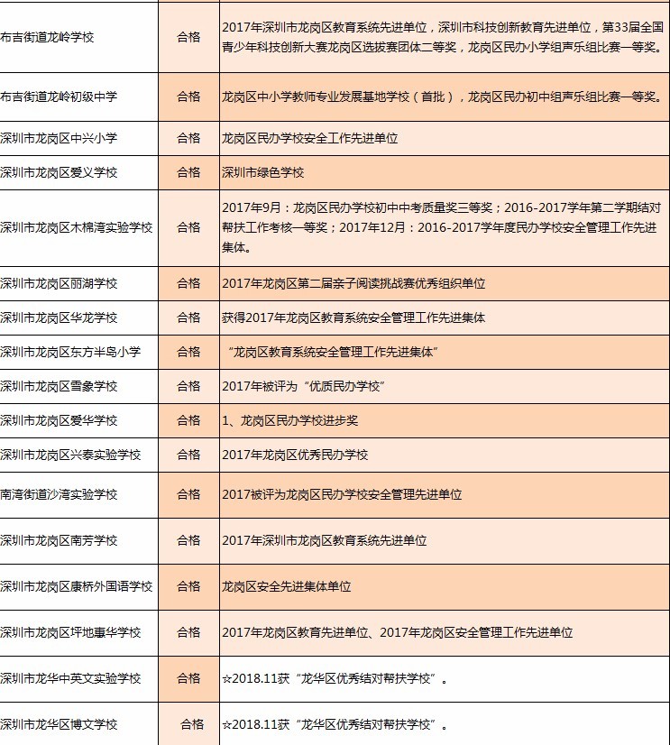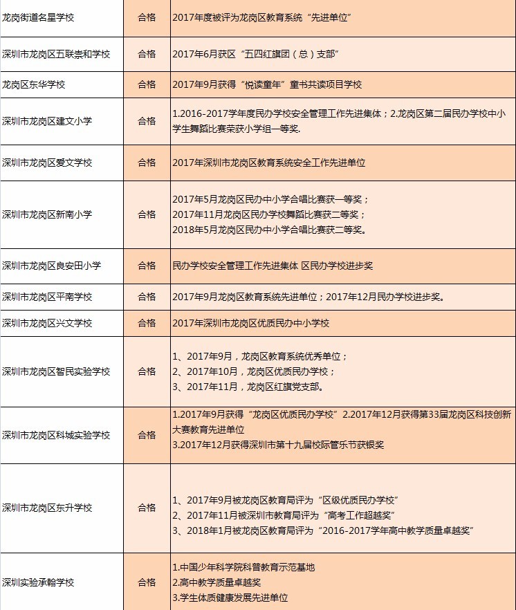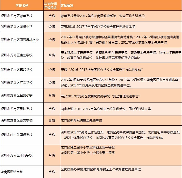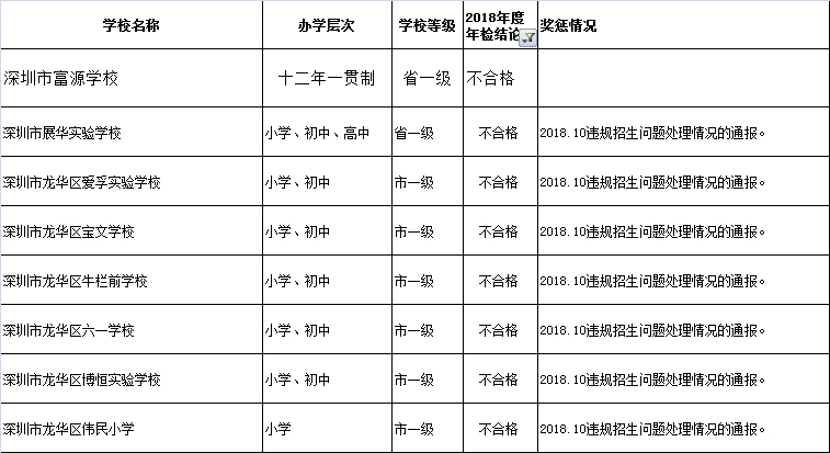 近日,深圳教育局在其官網(wǎng)發(fā)布深圳市民辦中小學(xué)辦學(xué)情況信息公告。最新公告顯示:2018年度年檢結(jié)論為“不合格”的學(xué)校共有8所,“基本合格”的有12所,其他均為“合格”或“不滿一年未年檢”。其中,不合格的8所學(xué)校分別為:深圳市富源學(xué)校、深圳市展華實(shí)驗學(xué)校、深圳市龍華區(qū)愛孚實(shí)驗學(xué)校、深圳市龍華區(qū)寶文學(xué)校、深圳市龍華區(qū)牛欄前學(xué)校、深圳市龍華區(qū)六一學(xué)校、深圳市龍華區(qū)博恒實(shí)驗學(xué)校和深圳市龍華區(qū)偉民小學(xué)。主要涉及違規(guī)招生問題。
