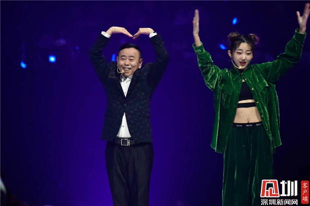 潘長江在臺上與一位抖音創(chuàng)作者互動。