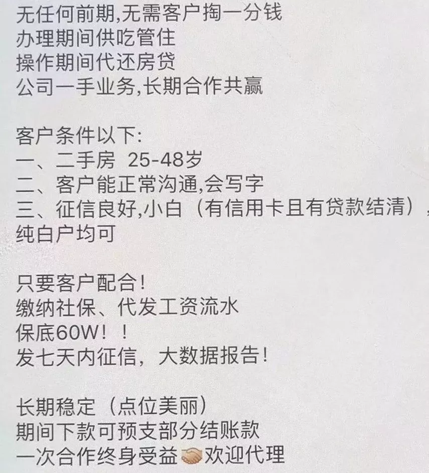 為了從銀行貸到款,中介們開始無所不用其極,其中最普遍的就是包裝客戶資質(zhì),業(yè)內(nèi)稱為“包裝貸款”。