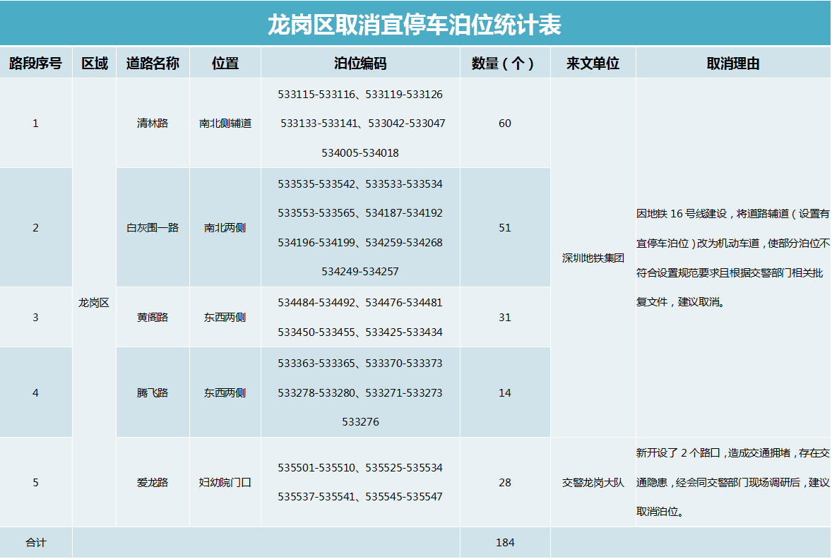據(jù)悉,338個宜停車泊位中包括福田區(qū)4條道路共30個泊位,南山區(qū)5條道路共58個泊位,鹽田區(qū)1條道路共9個泊位,寶安區(qū)1條道路共24個泊位,龍崗區(qū)5條道路共184個泊位,龍華區(qū)1條道路共33個泊位。