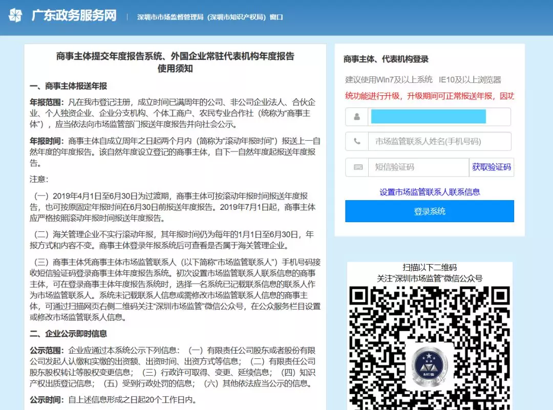 第一步:通過(guò)掃描新版營(yíng)業(yè)執(zhí)照二維碼或進(jìn)入深圳市場(chǎng)監(jiān)管官微點(diǎn)擊“公眾服務(wù)”欄目下的“商事主體年報(bào)”進(jìn)入手機(jī)年報(bào)登錄界面。