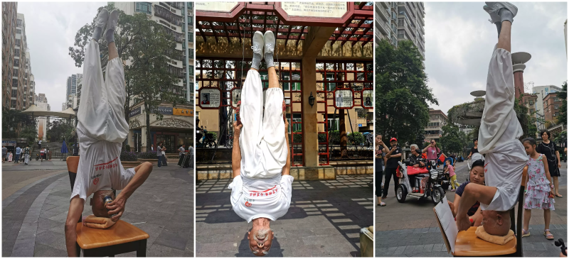 倒立喝水、倒立吊環(huán)、倒立寫字…無(wú)一不能