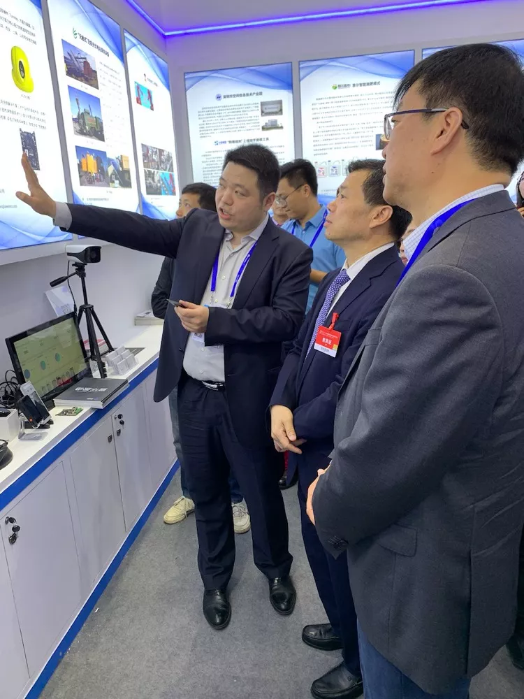 新疆維吾爾自治區(qū)政府副秘書(shū)長(zhǎng)許龍章、科技廳廳長(zhǎng)張小雷、科技廳副廳長(zhǎng)劉智敏參觀新譯展區(qū)