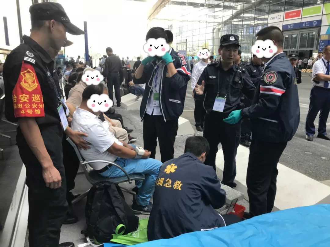 機(jī)動訓(xùn)練大隊(duì)三中隊(duì)執(zhí)勤分隊(duì)長郭正在執(zhí)勤時(shí),發(fā)現(xiàn)一名參展商頭暈不適,第一時(shí)間通知場館醫(yī)療人員前往救助,隨后將該名參展商送往醫(yī)院,經(jīng)醫(yī)生救治后該名參展商已無大礙。