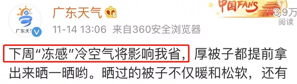 終于有股像樣的冷空氣要來(lái)深圳了!