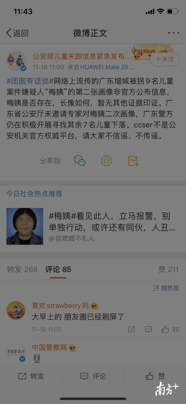 #團圓有話說#網(wǎng)絡上流傳的廣東增城被拐9名兒童案件嫌疑人“梅姨”的第二張畫像非官方公布信息,梅姨是否存在,長像如何,暫無其他證據(jù)印證。廣東省公安廳未邀請專家對梅姨二次畫像,廣東警方仍在積極開展尋找其余7名兒童下落。ccser不是公安機關(guān)官方權(quán)威平臺,請大家不信謠、不傳謠。