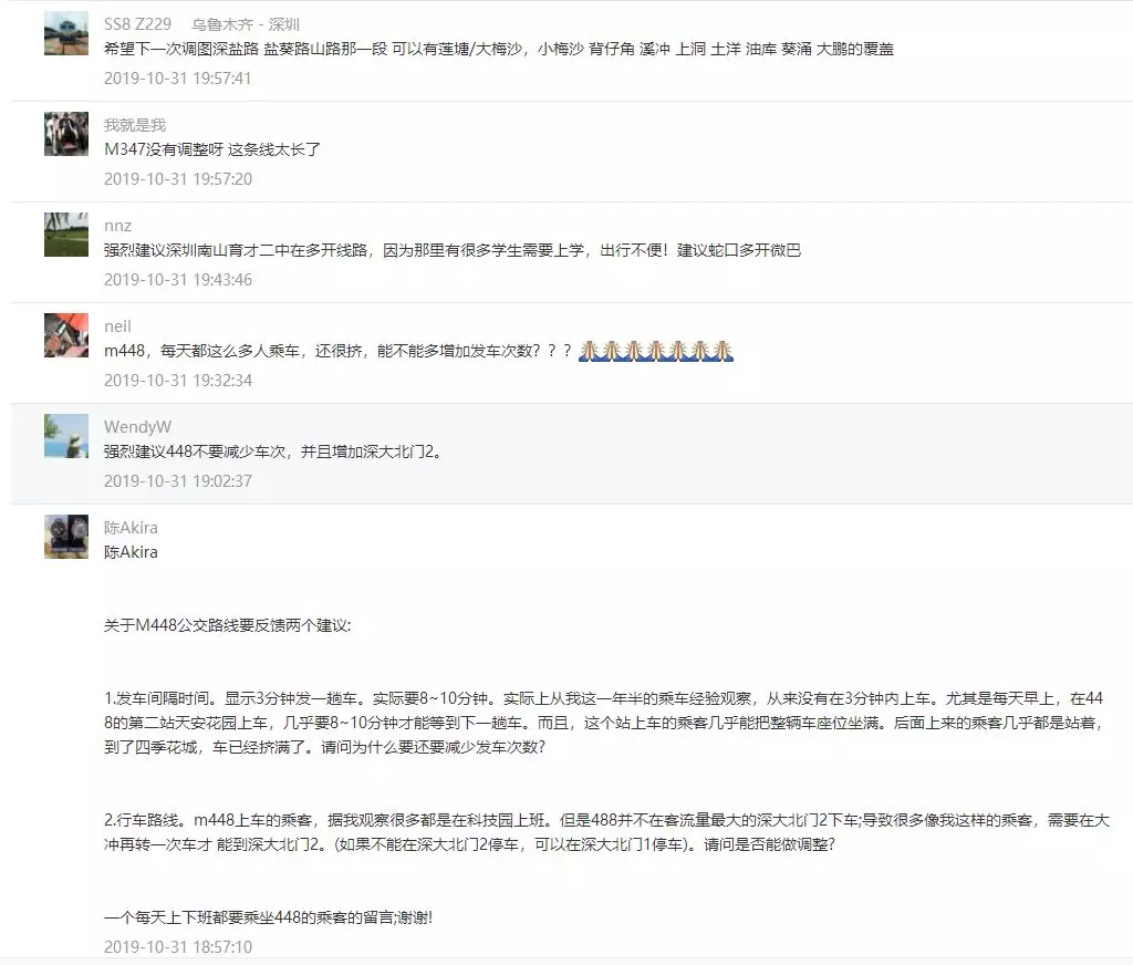 見圳客戶端·深圳新聞網(wǎng)2019年11月27日訊 上個月的最后一天,深圳市公共交通管理局發(fā)布了《2019年第二批公共汽車線路規(guī)劃方案》(征求意見稿),不少小伙伴都在留言區(qū)建言。