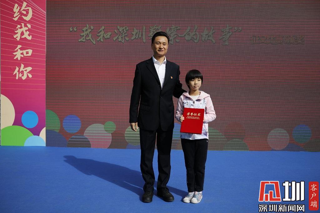 獲得“我和深圳警察的故事”征文比賽特等獎的小朋友上臺領獎。