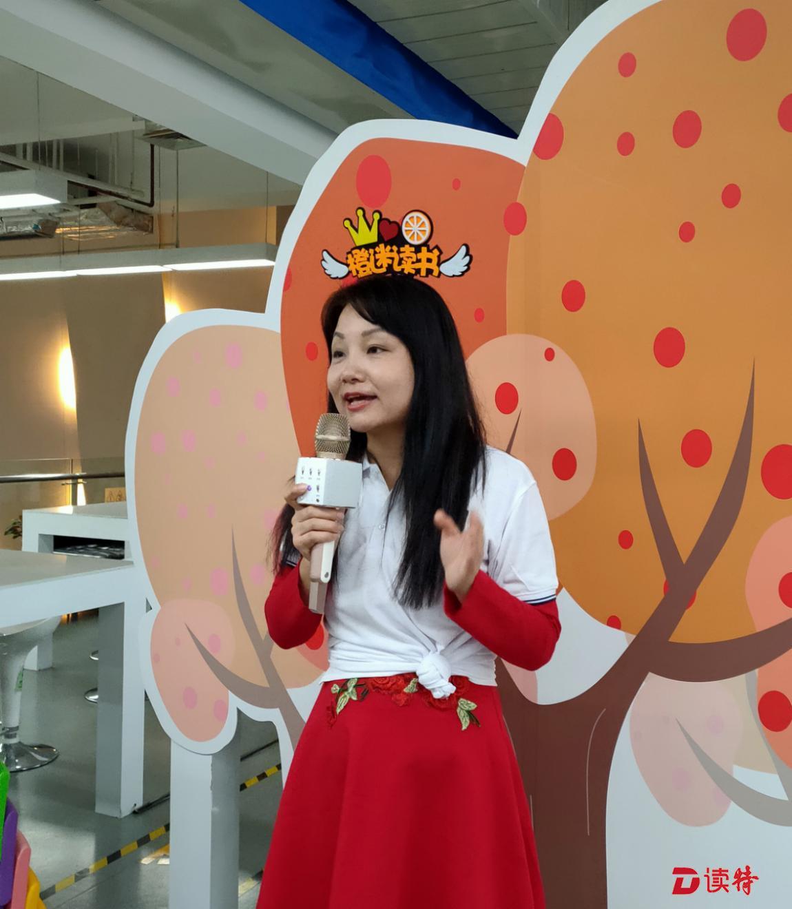 館長(zhǎng)媽媽陳瑛(光明區(qū)公共文化藝術(shù)發(fā)展中心主任)為閱讀之星頒獎(jiǎng)。