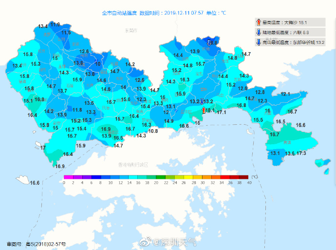 見圳客戶端·深圳新聞網2019年12月11日訊 據深圳市氣象臺2019年12月11日05時22分發(fā)布,今日深圳市空氣干燥,需及時補充水分:6-9時,全市晴天間多云,氣溫14-18℃,相對濕度40%-75%。