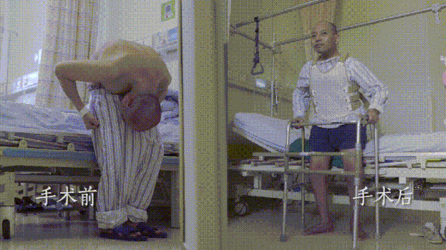 牽動全院人心的第三次手術(shù)在9月18日進行。這一步要將李華彎成C字型的脊柱拉直。手術(shù)進行了幾乎一天,醫(yī)生們找準脊椎最彎曲的兩處地方,截斷,重新拼接成直線。手術(shù)完成后當天晚上,李華20年來第一次能躺平睡覺了!