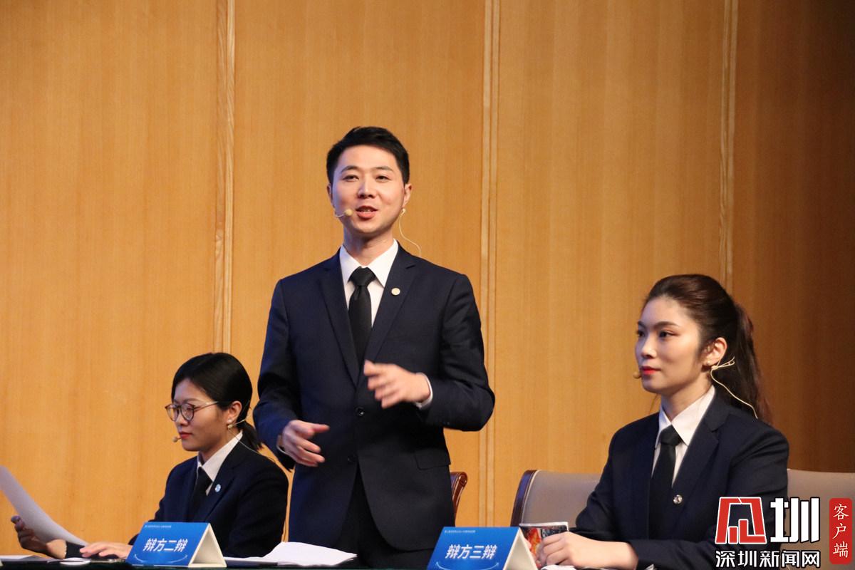 第一個(gè)辯題結(jié)束后,辯方辯手接受深圳新聞網(wǎng)記者采訪。從左到右依次為卜祥波、李銳杰、艾青三位律師。