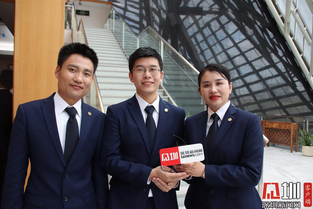 辯方第二隊(duì)接受深圳新聞網(wǎng)記者采訪,從左到右分別是鄧銳,李悅,劉思瑤三位律師。
