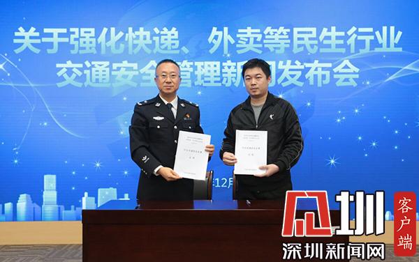 深圳市交警局副局長(zhǎng)馮新毅與相關(guān)企業(yè)代表簽訂承諾書。
