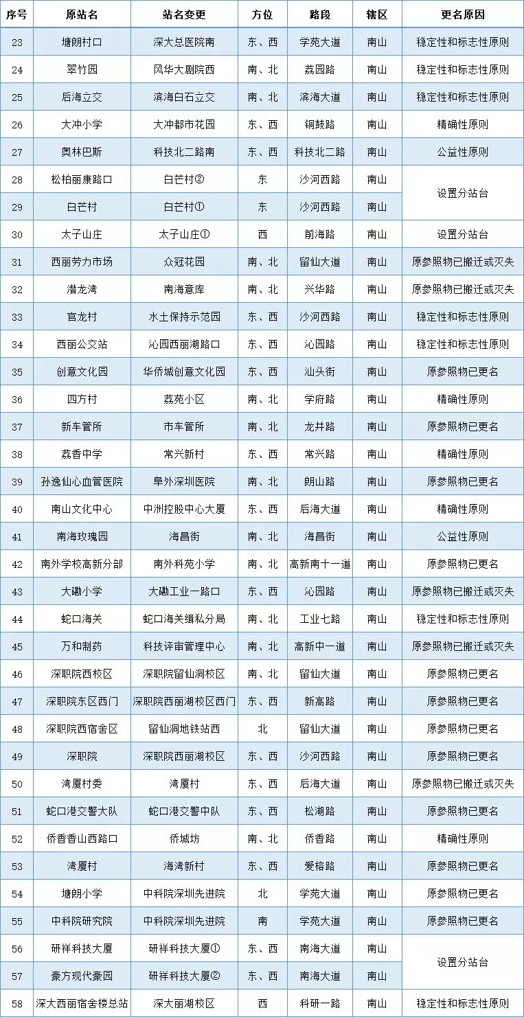 各區(qū)(新區(qū))公交站更名名單