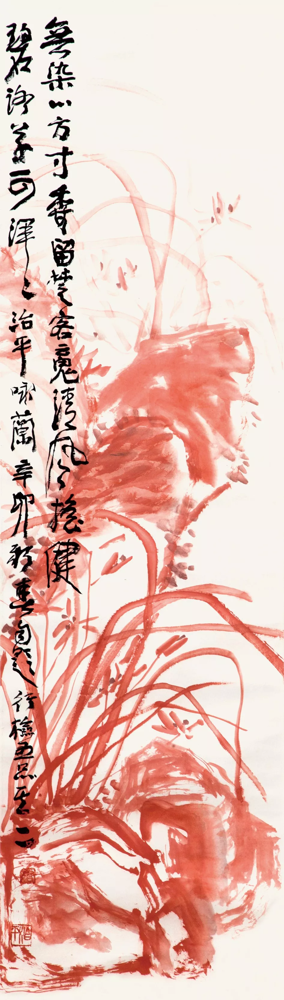 作品是人性在宣紙上的延伸。魏治平如是說(shuō),亦如是踐行。本次展覽還會(huì)展出一套用朱砂繪成的“行鑒五品”?!靶需b五品”是魏治平結(jié)合“歲寒三友”與“花中四君子”提出的概念,指的是梅、蘭、竹、菊、松。魏治平認(rèn)為,“蘭,空谷幽香,孤芳自賞;竹,篩風(fēng)弄月,瀟灑一生;菊,凌霜自行,不趨炎勢(shì);梅,剪雪裁冰,一身傲骨;松,正直蒼健,常青不老。時(shí)時(shí)以五品自檢,能觀照本我;事事用五品自律,可清澈心智?!?/p>
