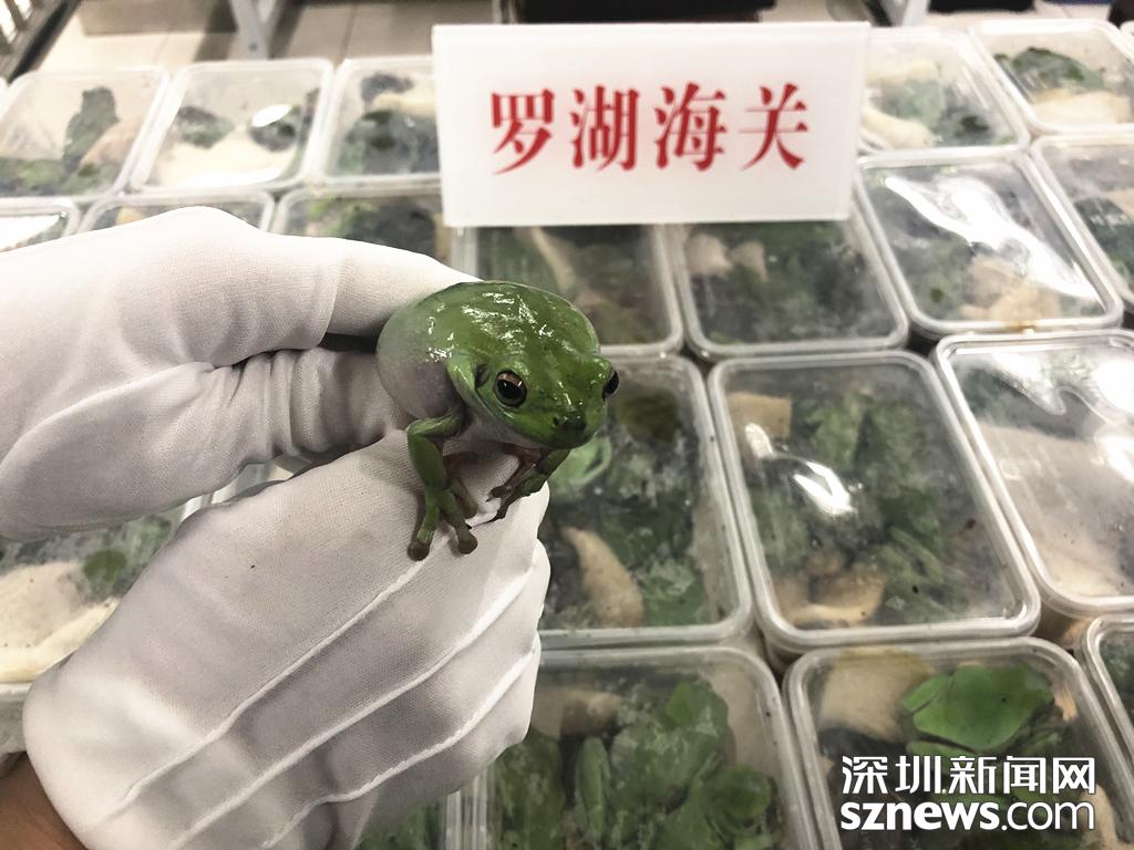 3月21日兩名旅客攜帶670只活體老爺樹(shù)蛙入境,被深圳海關(guān)隸屬羅湖海關(guān)當(dāng)場(chǎng)查獲。