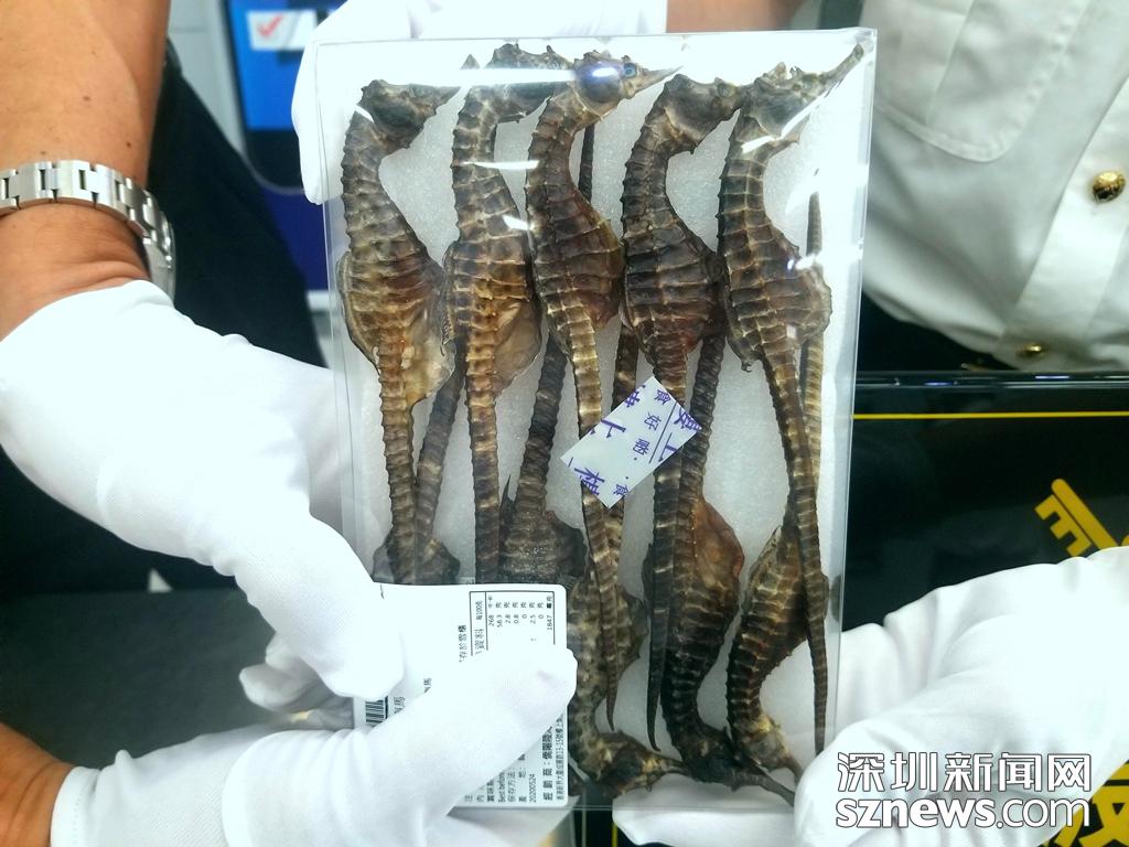 5月19日,一名中國(guó)籍旅客從深圳文錦渡口岸入境時(shí),海關(guān)關(guān)員在其行李中共查獲干海馬10只,長(zhǎng)度約20公分,總重40克。