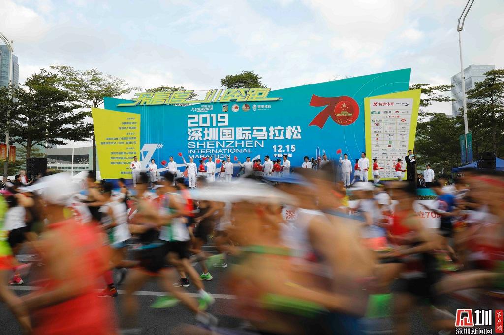 2019年12月15日,深南大道,2019深圳國際馬拉松鳴槍開跑。