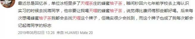 不少網(wǎng)友發(fā)現(xiàn)超市、商店下架天喔招牌飲品蜂蜜柚子茶后,紛紛表示喝了這么多年,突然發(fā)現(xiàn)沒(méi)得賣(mài)之后,有種莫名的懷念。