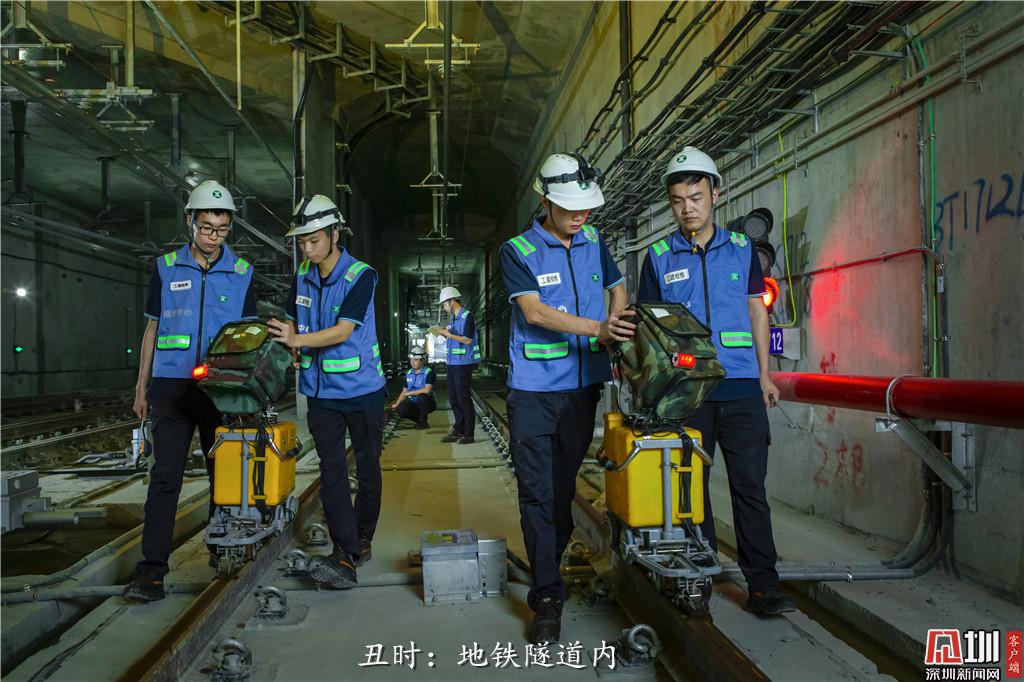 丑時:凌晨2點,深圳地鐵維修中心的探傷工正在進行軌道探傷作業(yè),確保白天地鐵能正常運行。
