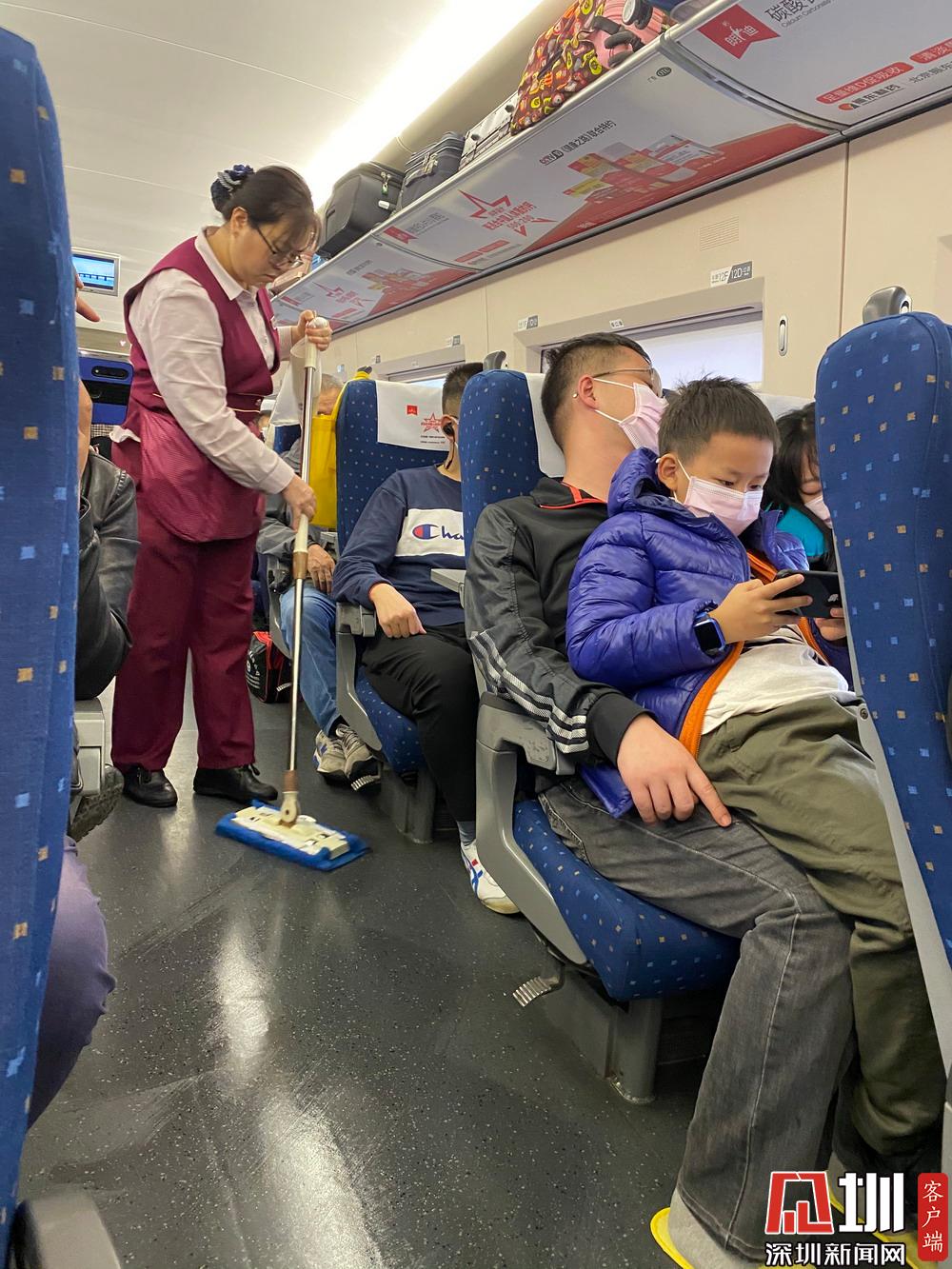 這個(gè)姐姐,隔一會(huì)兒就過來拖一次地,所以整個(gè)車廂都特別干凈!見圳客戶端、深圳新聞網(wǎng)記者 劉婷 攝