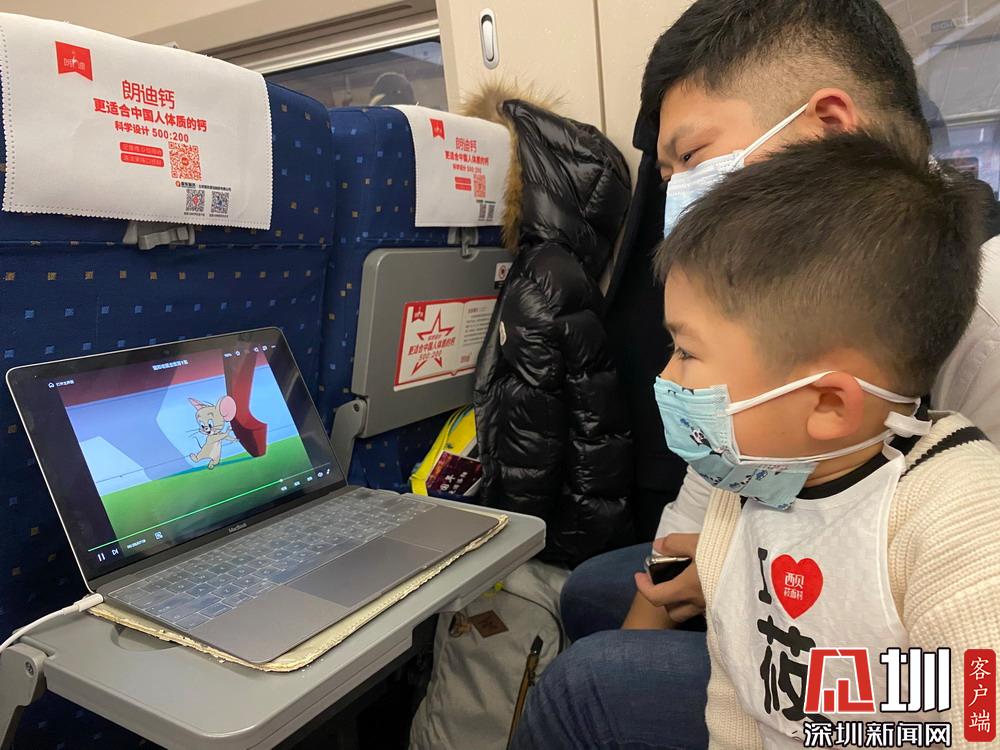 感覺走了好久了,我都覺得有點(diǎn)無聊了,爸爸就給我看<貓和老鼠>,爸爸說,在我們家,媽媽就是那只老鼠,天天氣那只胖貓(爸爸)。見圳客戶端、深圳新聞網(wǎng)記者 劉婷 攝