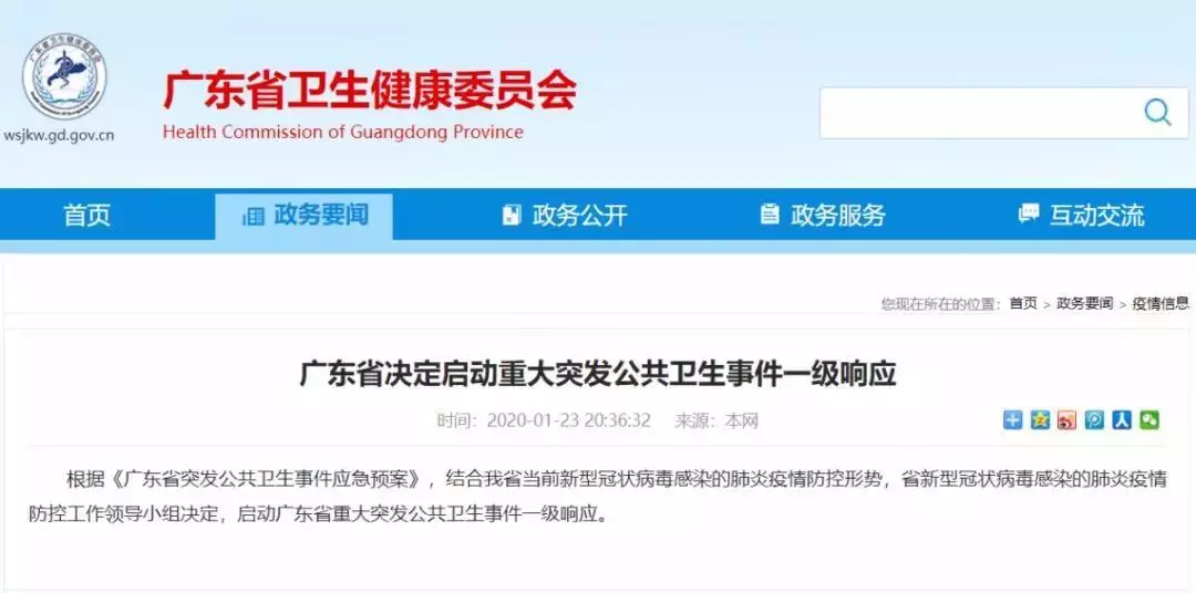 廣東啟動(dòng)重大公共衛(wèi)生事件一級(jí)響應(yīng)