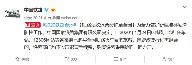 【鐵路免收退票費(fèi)擴(kuò)至全國(guó)】為全力做好新型肺炎疫情防控工作,中國(guó)國(guó)家鐵路集團(tuán)有限公司決定,自2020年1月24日0時(shí)起,此前在車站、12306網(wǎng)站等各渠道已購(gòu)買全國(guó)鐵路火車票的旅客,自愿改變行程需退票的,鐵路部門均不收取退票手續(xù)費(fèi),購(gòu)買鐵路乘意險(xiǎn)的一同辦理。