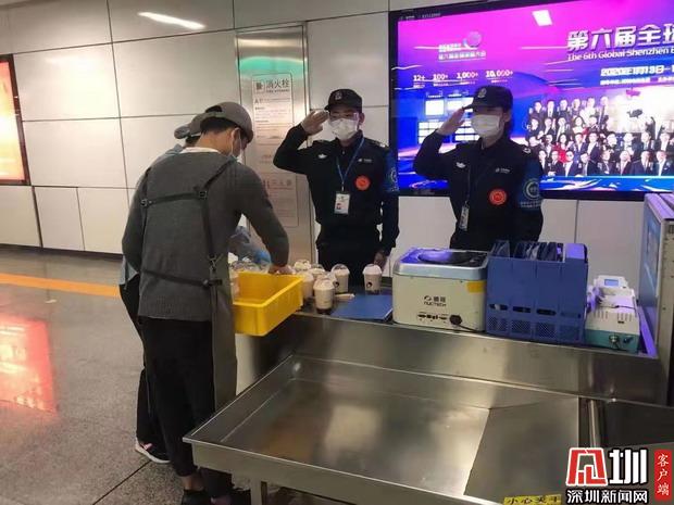 在疫情防控期間,有市民為地鐵安檢人員送奶茶。