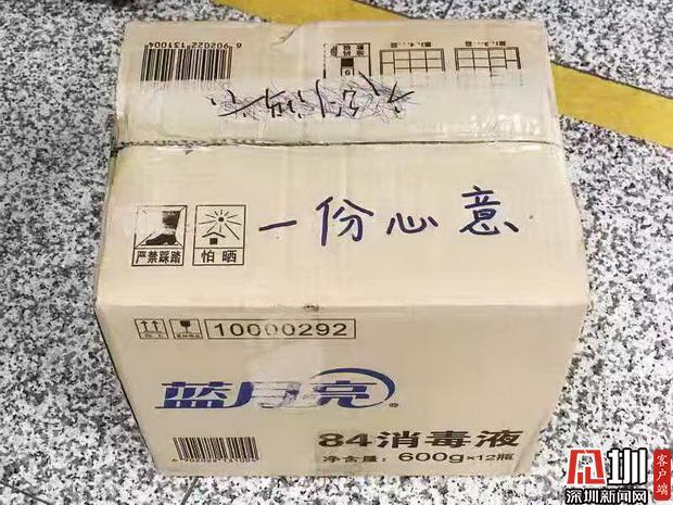 2020年1月30日晚20:55分,深圳地鐵梅村站工作人員正在安檢口執(zhí)勤時(shí),一名戴著口罩的男子走進(jìn)來,放下一個(gè)箱子便轉(zhuǎn)身離去。工作人員發(fā)現(xiàn)箱子上寫著“一份心意”四個(gè)字,打開發(fā)現(xiàn)箱內(nèi)有12瓶84消毒液,正欲上前感謝時(shí),男子已匆匆離開,只留下了一個(gè)背影。