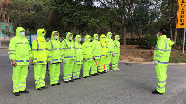 目前,燕羅街道各社區(qū)將庫存的防水材質(zhì)三防防護(hù)服全部送到一線,隊(duì)員們穿著時將袖口、脖口的鎖口扎緊,褲子選取大一碼的方便遮住腳面,同時佩戴護(hù)目鏡、口罩、一次性手套、一次性鞋套,對全身進(jìn)行包裹。換班時,利用配置好的消毒水全面噴淋,或是在消毒桶里浸泡不少于20分鐘,并在太陽下掛起晾曬。