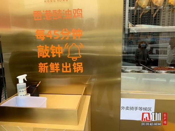 根據(jù)相關(guān)規(guī)定,兩家餐廳門口均設立預防區(qū)及外賣騎手區(qū),餐廳配備了體溫測試儀及消毒酒精,每位到店的顧客或騎手均需進行體溫檢測及消毒,特別是金戈戈豉油雞餐廳更為市民配備了口罩。