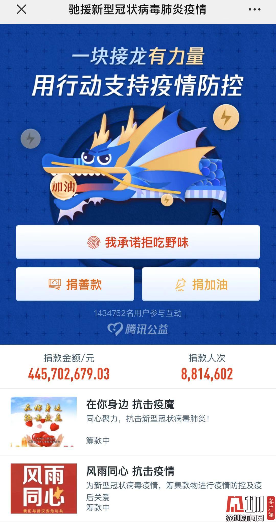 此外,騰訊公益也開通馳援新冠疫情籌集善款的專項(xiàng)平臺(tái),該平臺(tái)上已有53家慈善組織啟動(dòng)執(zhí)行工作。截至2月2日下午6點(diǎn)45分,該平臺(tái)籌集善款445702679.03元,累計(jì)捐款達(dá)8814602人次。目前這些啟動(dòng)執(zhí)行工作的公益組織都在按照騰訊公益平臺(tái)和運(yùn)營(yíng)規(guī)則進(jìn)行。騰訊公益平臺(tái)也將通過(guò)“透明機(jī)制“追蹤這些的項(xiàng)目的執(zhí)行情況。