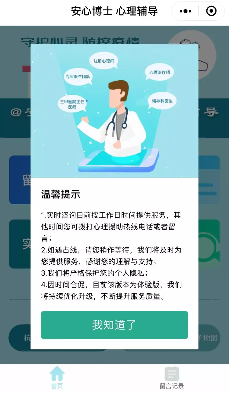 無(wú)論您是對(duì)疫情防護(hù)有疑問(wèn),或是想要需求心理幫助,都可以24小時(shí)進(jìn)行咨詢(xún)留言,安心博士有問(wèn)必答、有呼必應(yīng),讓大家在疫情防控中堅(jiān)定信心,共克時(shí)艱。